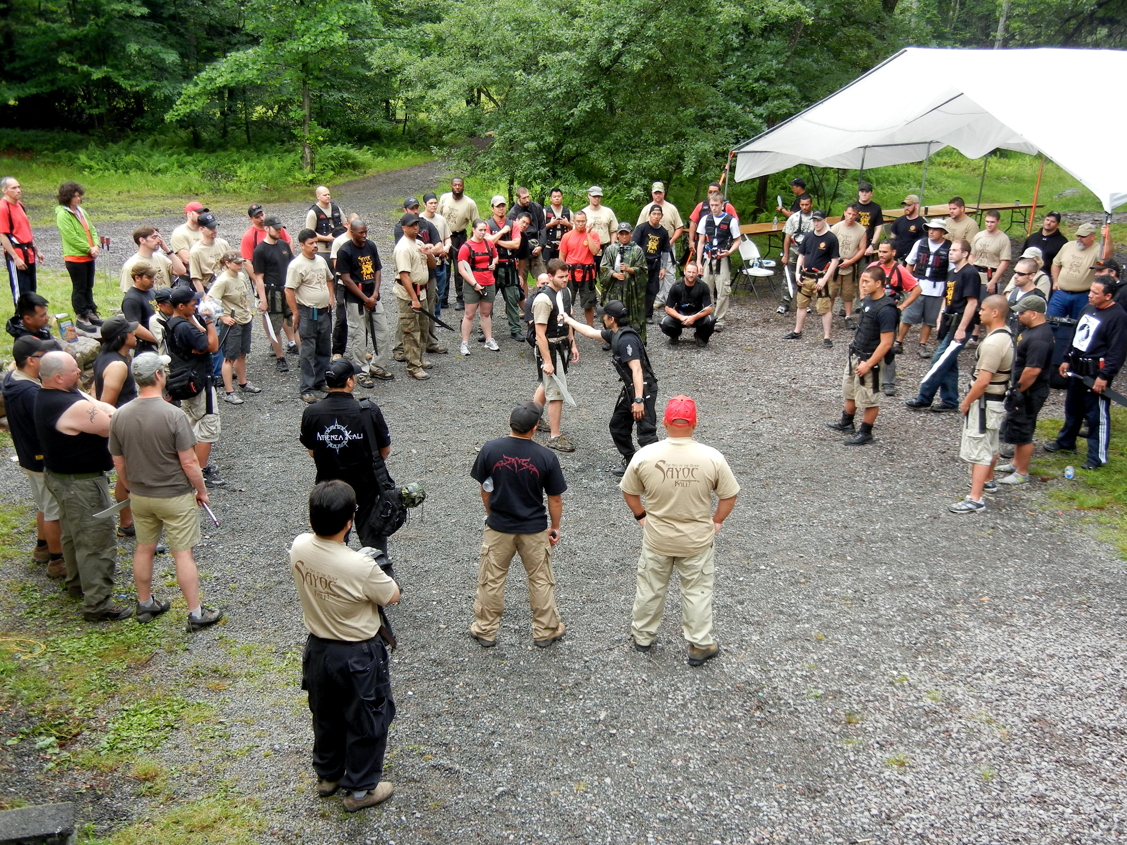 This weekend IEFMA student John Rellias and I attended the Sayoc Kali Sama Sama 2011 in the Pocono Mountains of Pennsylvania. I have been attending the annual gatherings since 2005 but for John this was his first time. Our trip began with early morning flights, as several instructors and students of the Sayoc LA collective and around the country began travelling to the East Coast. Guro Jon Auzenne of Close Combat Martial Arts in Burbank and Guro Steve Feng of Sayoc San Gabriel Valley and I met in Philadelphia and fueled up on authentic cheesesteaks at Pat’s King of Steaks before heading to the mountains. We all finally arrived later in the evening, and some of us were able to visit the event Hidden Agenda instructed by Guro Kevin Estela, on primitive projectiles. It was good to see brothers and meet new friends even that evening, and we were impressed with the scope and depth of instruction being introduced.