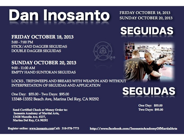 For anyone in the Los Angeles area, or with the means to travel there, the Fall Inosanto International Martial Arts Instructors Conference will be held next week from October 17-20 at the Inosanto Academy in Marina del Rey, CA.